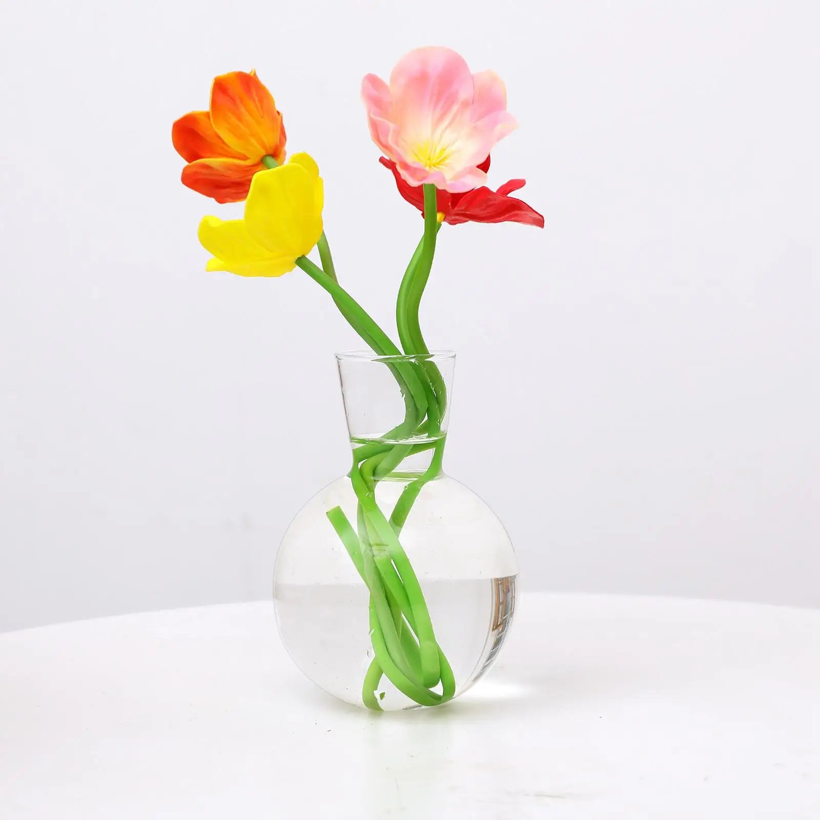 Glass Bud Vase Decorative Rustic Round Flower Vase Flask Home Decor Centerpiece