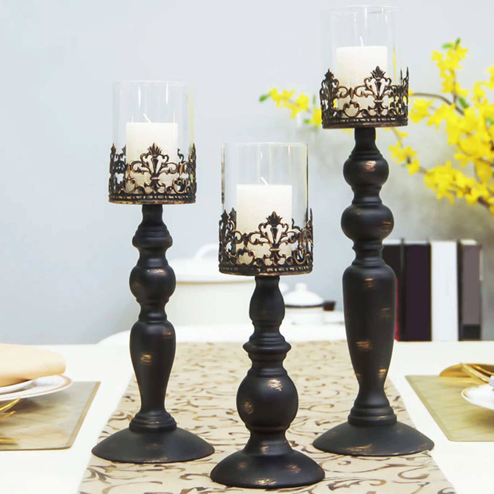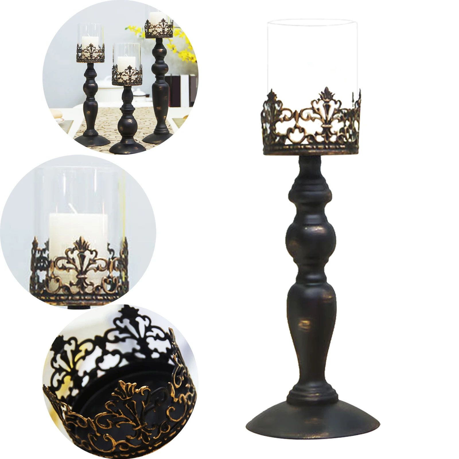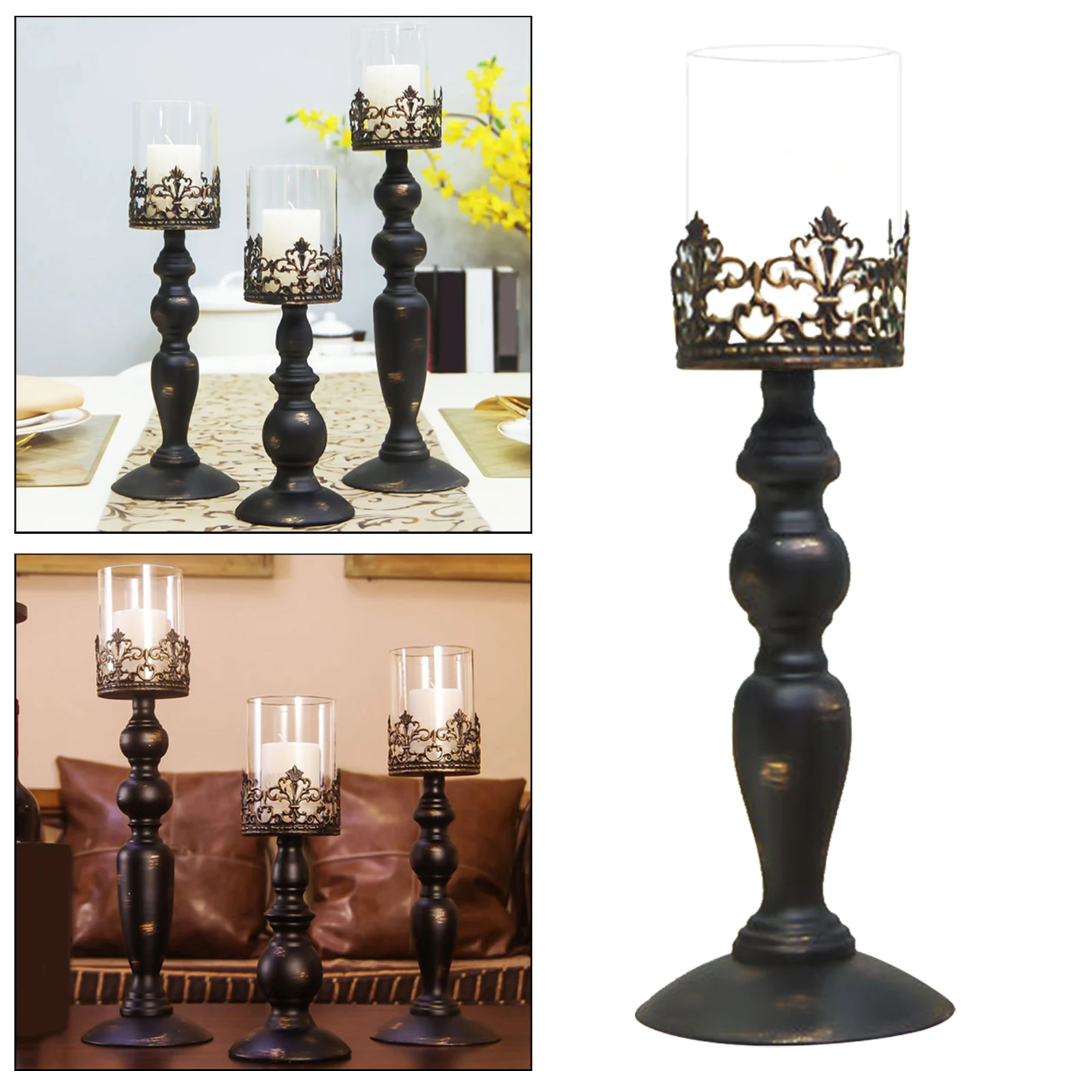 【Iron and Glass Material】: Candle holder is made of high quality iron and glass material, durable and eco friendly, paint process, anti rust, retro and beautiful appearance.