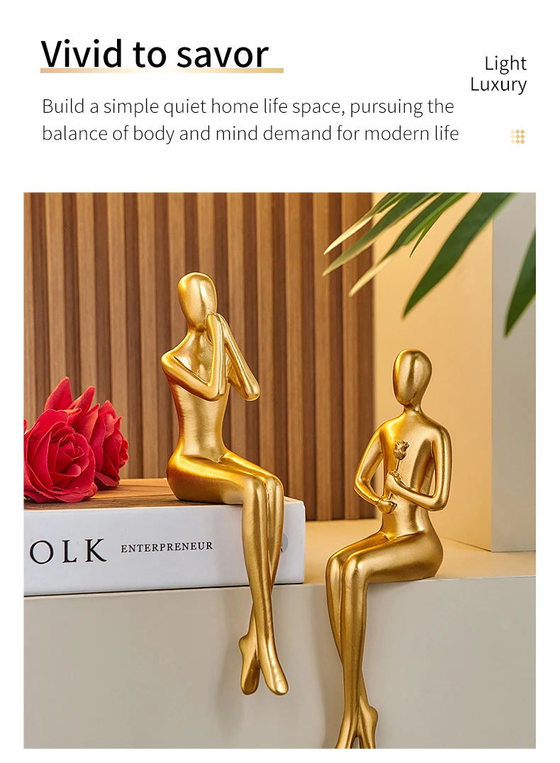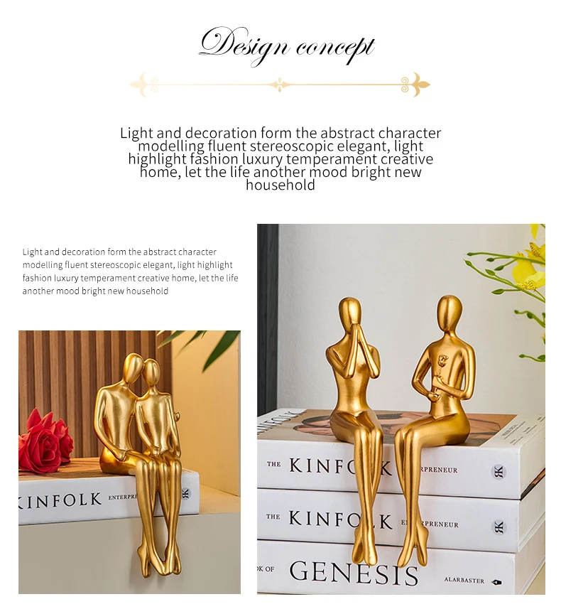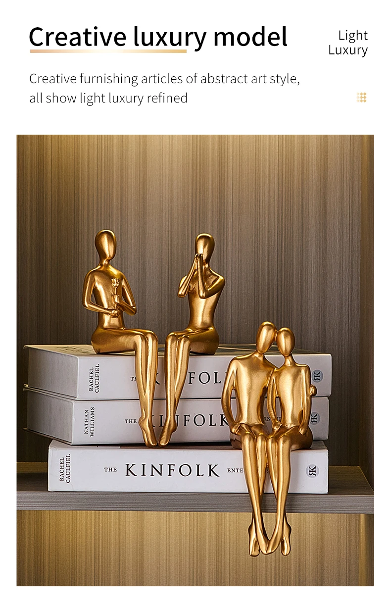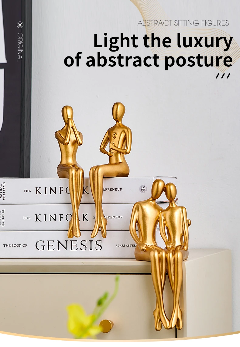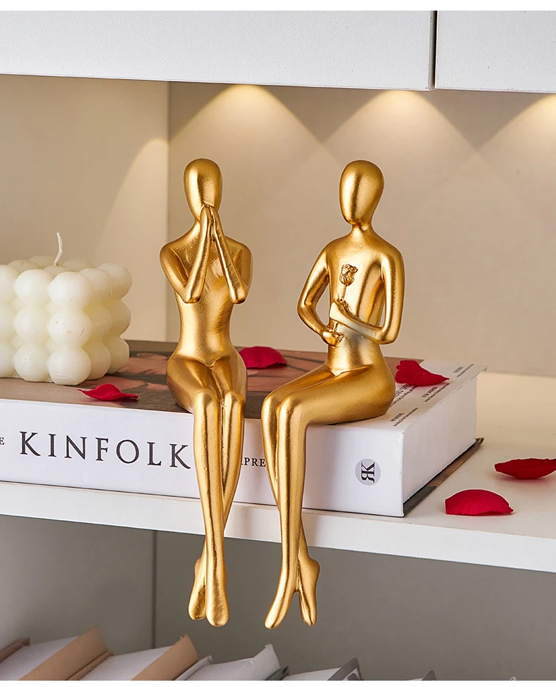 Abstrakt gyllene skulptur Figur figur Nordisk dekoration hem harts staty modern vardagsrum dekor skrivbord tillbehör europeisk