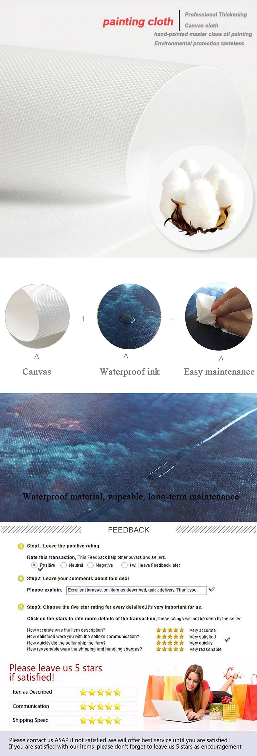 1.The poster is not handmade, it is printed by machine on canvas which is the best material for poster,