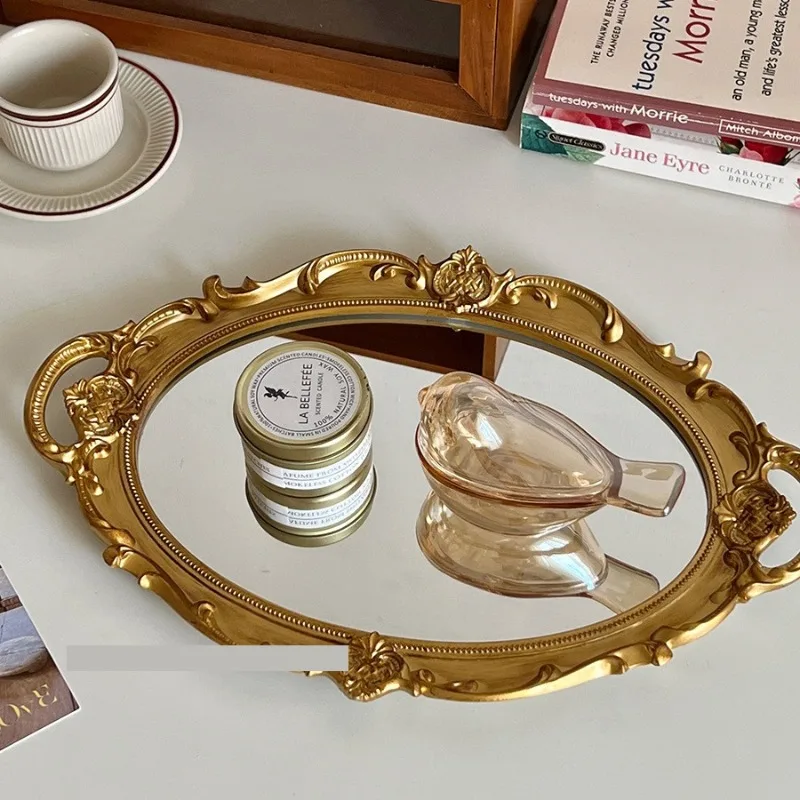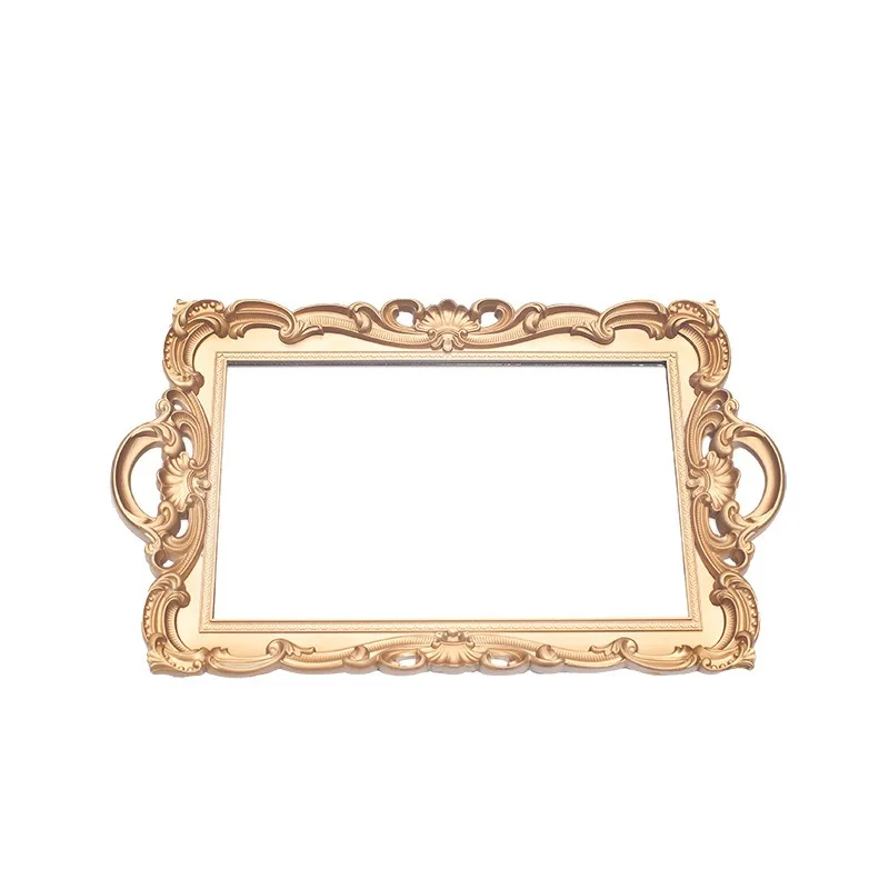 Europe Retro Tray Plastic Mirror Decoration Wedding Party Dessert Cupcake Stand Tray Jewelry Storage Tray Props Photography
