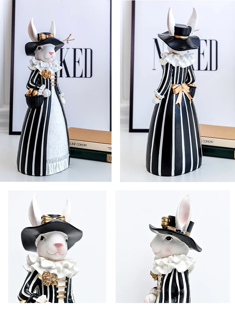 Creative Pastoral Palace Rabbit Family Decoration Home Ornaments Bedroom Living Room Porch Easter Bunny Resin Crafts kid Gift