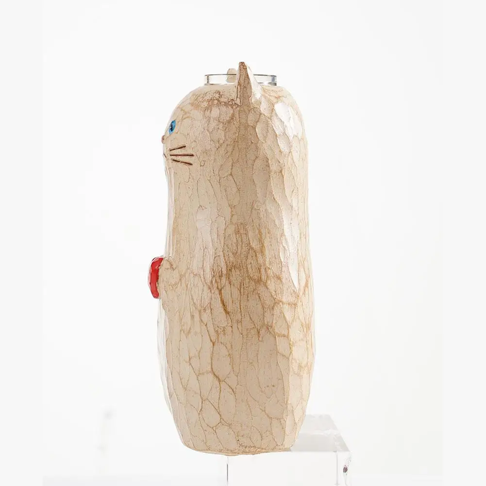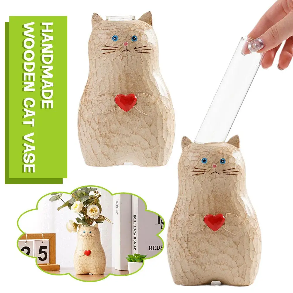 Handmade Wooden Cat Vase Solid Wood Handmade Vase Modern Plant Home Tall Shelf Decor Decoration Accents Vase Floor Solid Fl P2B2