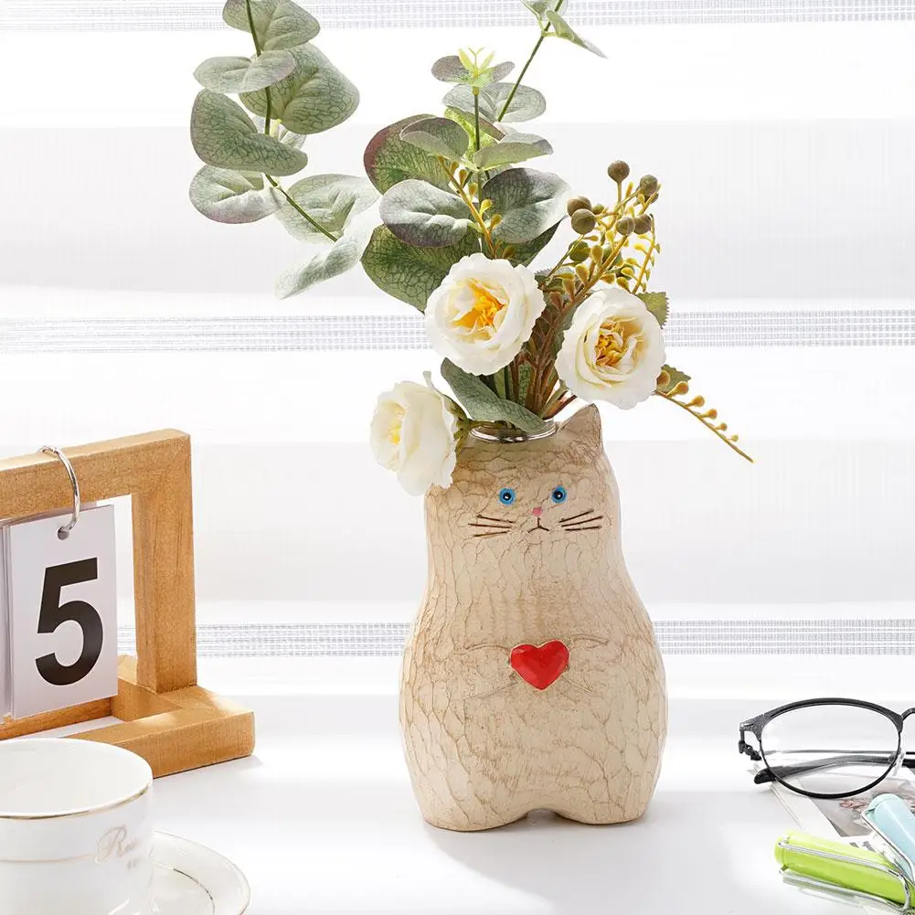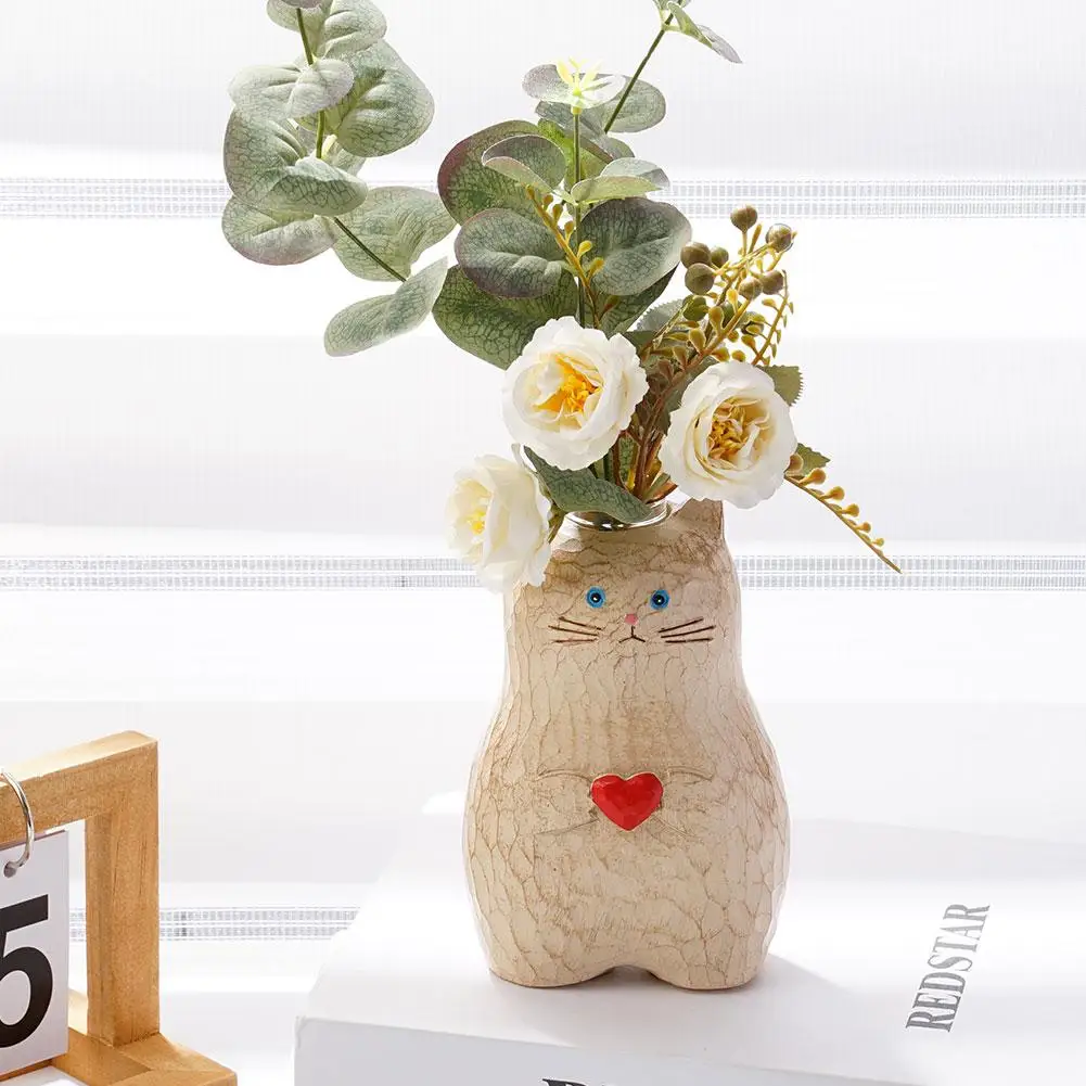 This handmade cat vase is carefully carved from recycled resin and hand painted love heart with vibrant colours that attempt to match nature's beauty.